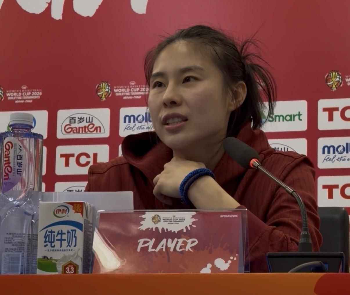 所以从这场比赛,包括前两场比赛影射出我们现在的一个现象,我也想在这里跟大家讲一下,希望在座的媒体朋友们也好,广大真正热爱中国女篮的球迷们也好,希望给我们中国女篮一点时间,多一点理解和包容。之前的女篮已经过去了,我们历史的荣誉也停留在历史,我们现在队伍里真正意义上打球的人可能只有三个人,我、韩旭、李月汝,只有我们三个人,很多一年级国家队的新生,我们在一起之间的磨合时间、两个海外球员回来的时间也非常短,所以我们之间还在努力的提高和进步,不断的在往前走。